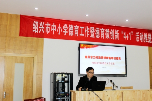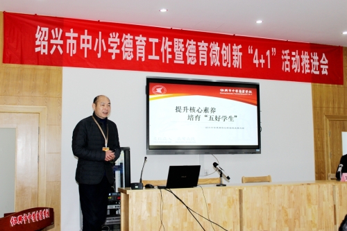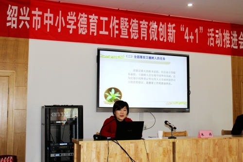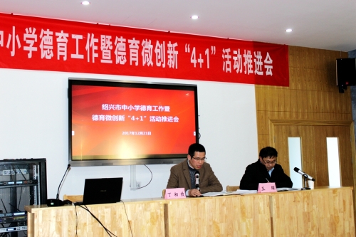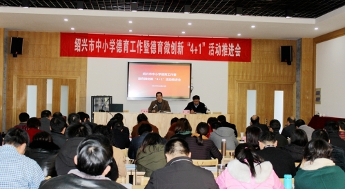 12月21日,绍兴市中小学德育工作暨德育微创新“4+1”活动推进会在绍兴中专举行。省教育厅基教处副处长朱丹,市委教育工委委员、市教育局副局长丁初效等领导参加会议并讲话。参加会议的还有各区、县(市)教育局分管领导、基教科长及分管德育工作副校长代表,市直学校党委书记、分管德育工作副校长等90余人,会议由市教育局基教处负责人王琛主持。